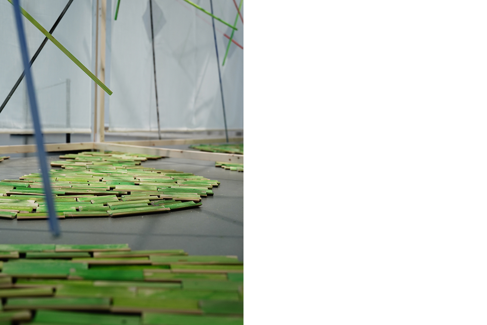 The space will function as a temporary exhibition for one month, with an extremely limited budget. The museum requires that the original walls, floor, and ceiling remain unaltered, and hopes that we fully utilize the bamboo, platforms, and hemp rope from the previous exhibition setup.